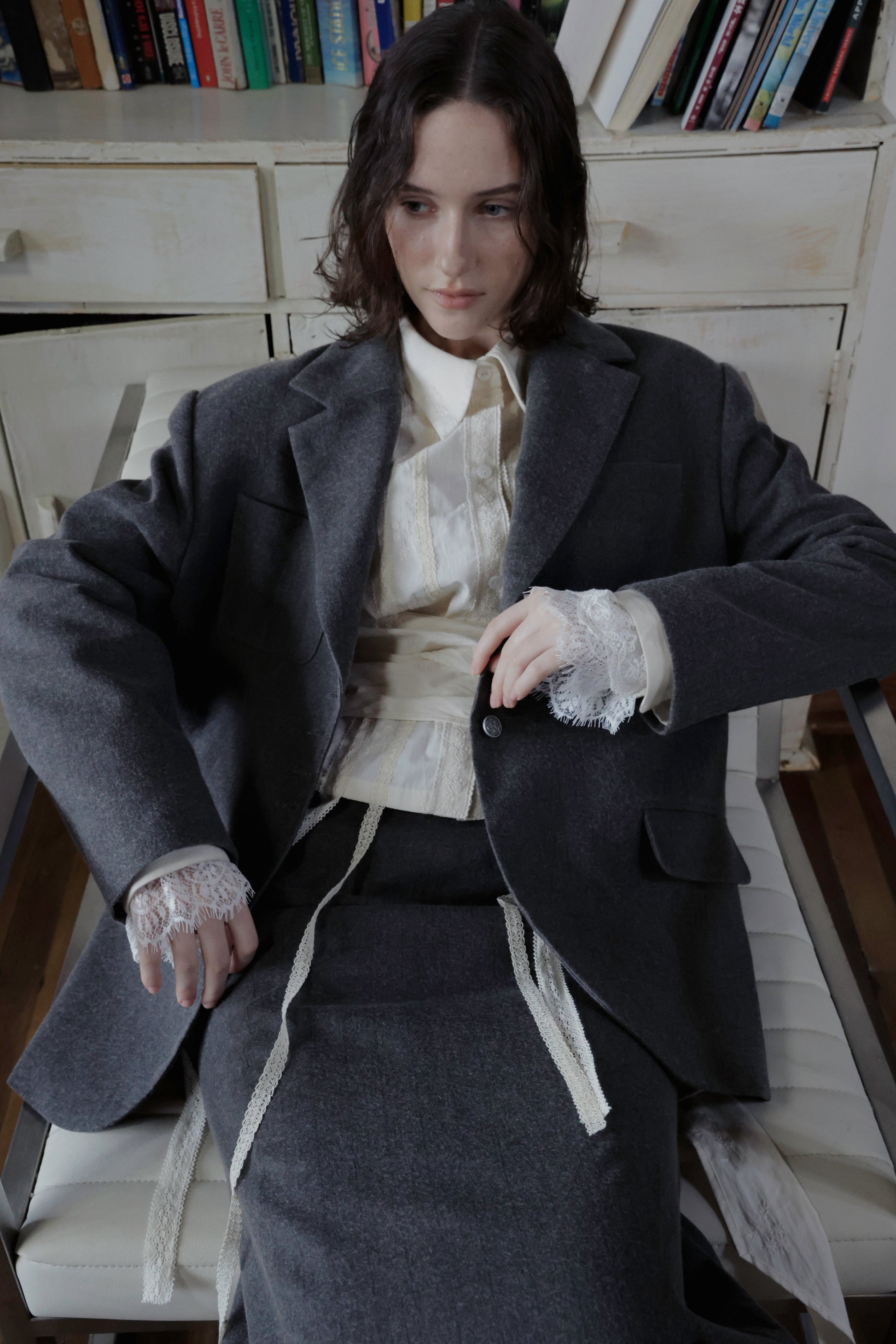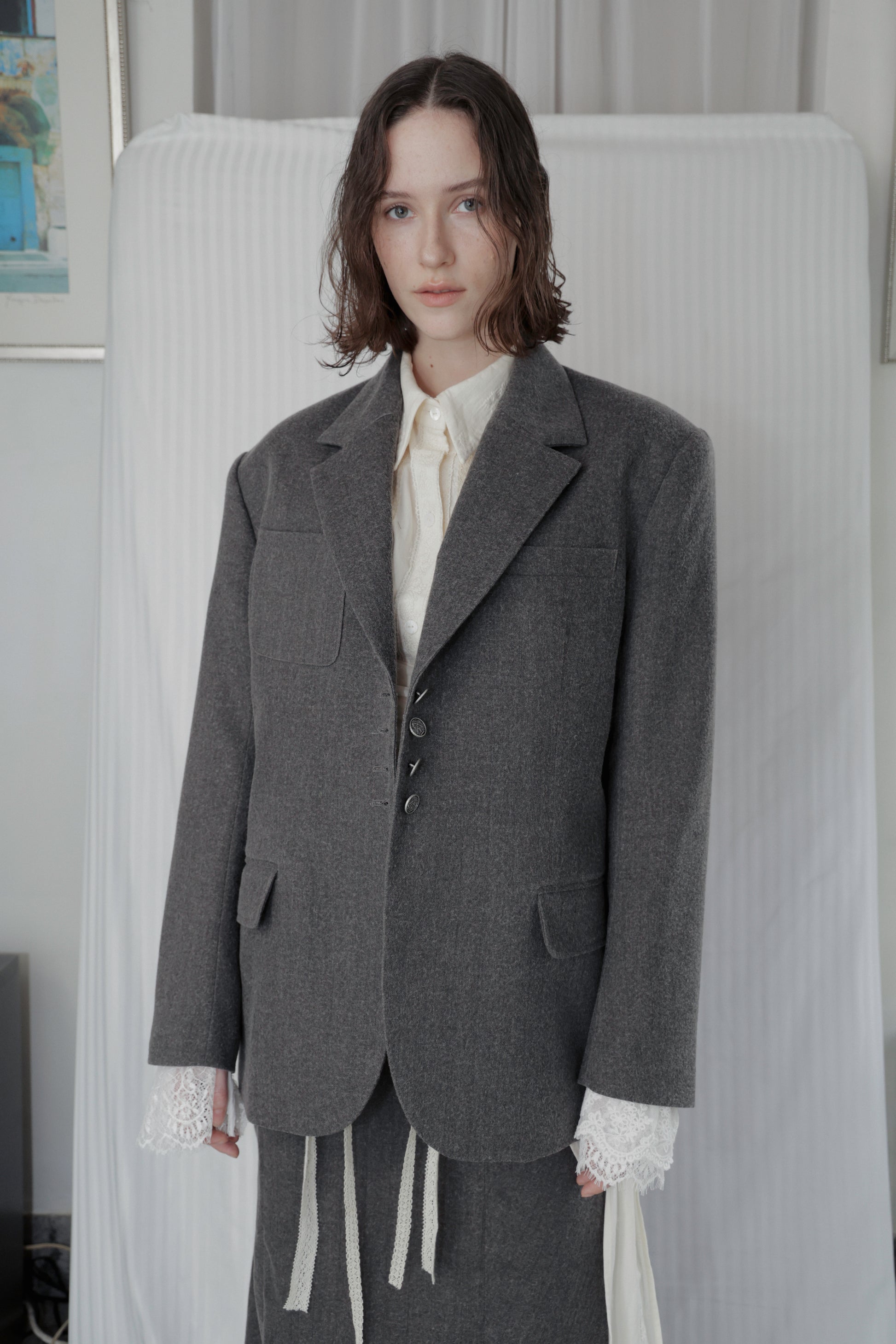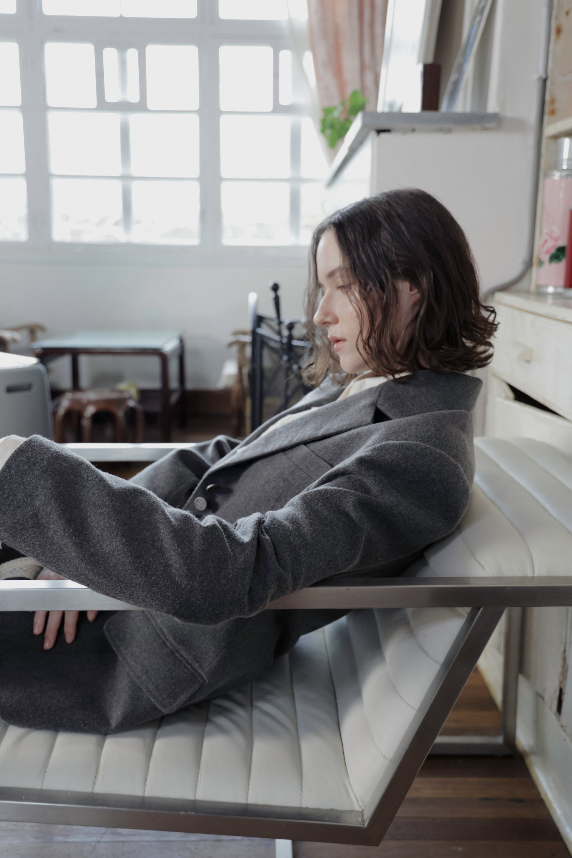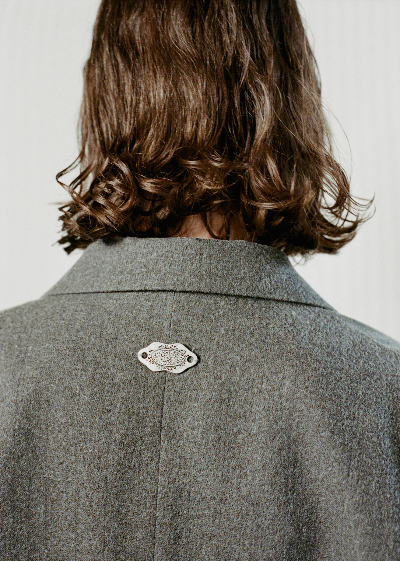 寬鬆版型,中長款,單排釦式,全裏日本水洗棉,品牌花園釦,品牌季別金屬標。